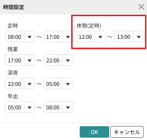 日報で労務の作業時間設定をする際、休憩時間を範囲で設定できるよう対応します。