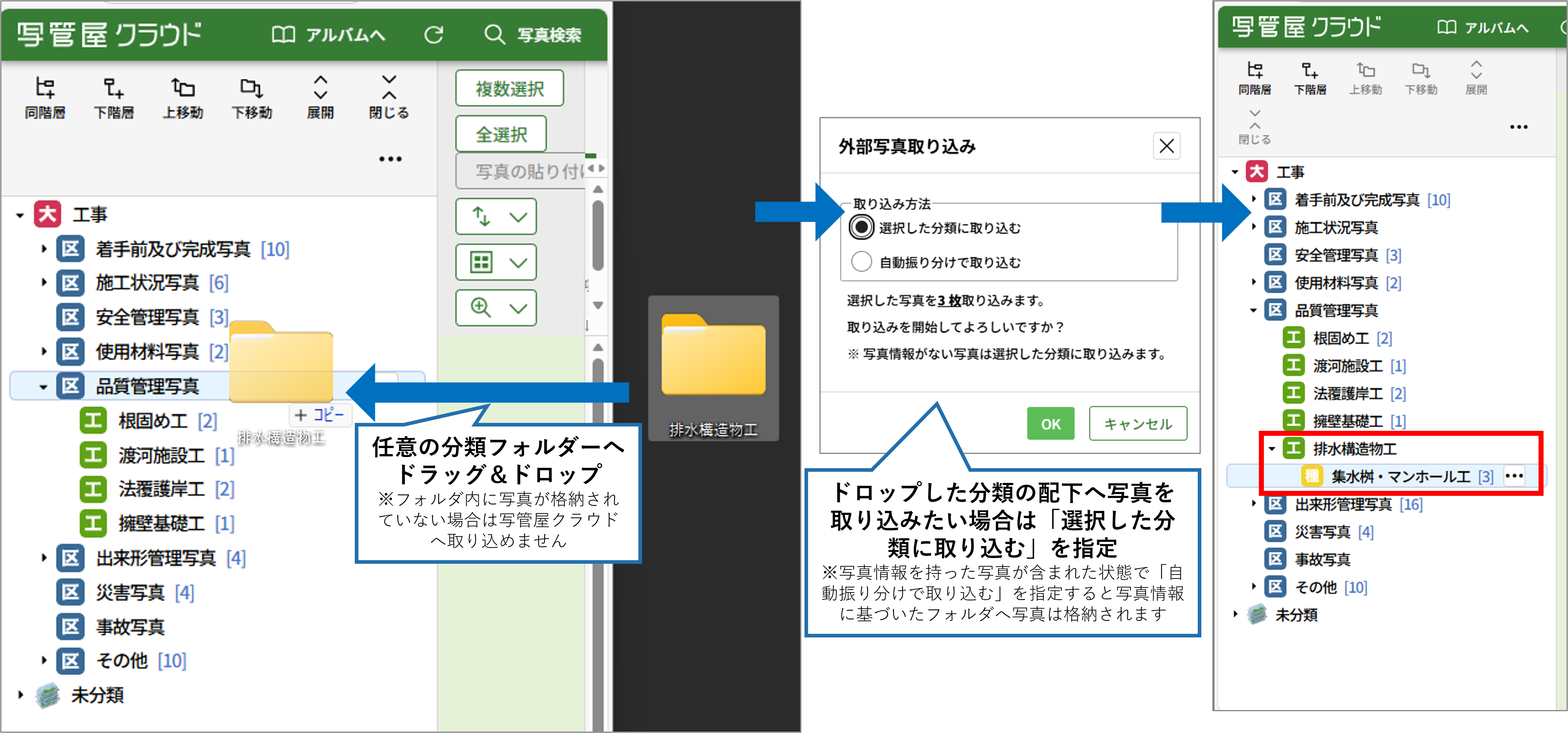 フォルダ構成も写管屋クラウド上で分類フォルダとして再現されるようになります。