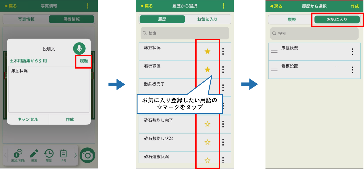 お気に入り登録した内容は、他の工事と共通のデータになります。