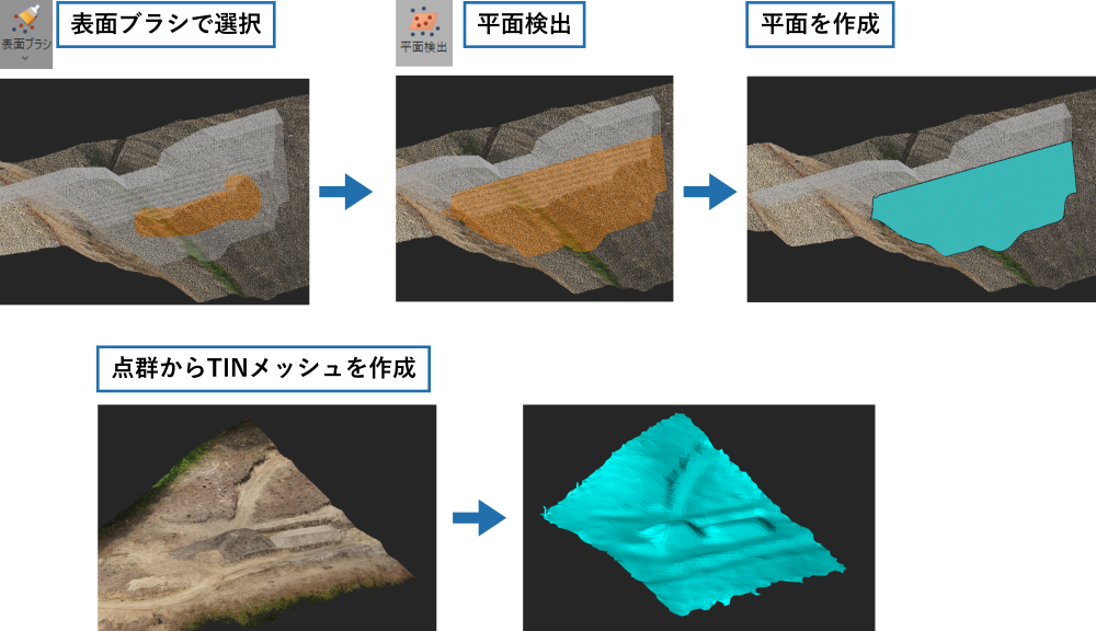 ・点群からサーフェス(平面・TINメッシュ)を作成する機能を搭載